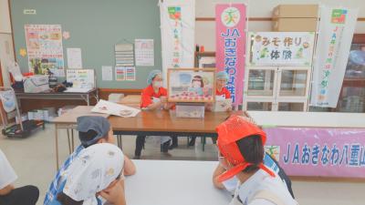 中学生がJAおきなわ婦人部のご指導の下、味噌づくりを行いました。大豆と麹を混ぜ合わせできあがりは数ヶ月ごとのこと。できあがった味噌を使っての調理実習が楽しみですね。JA婦人部の皆様ありがとうございました。