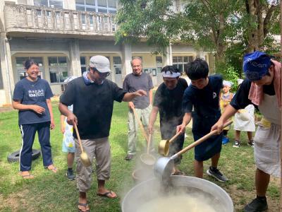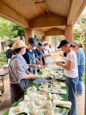 来週の種取祭に向けてイーヤチづくりを行いました。イーヤチは種取祭の時に各家庭でつくられ食べられるものです。