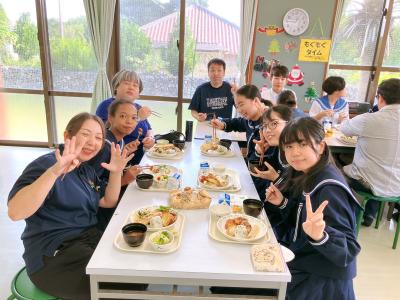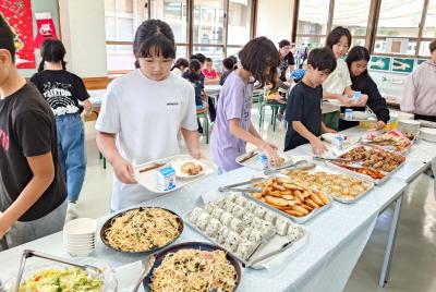 バイキング給食を行いました。パスタや唐揚げ、ケーキなどたくさんのメニューにみんな大喜びでした。また、竹富に縁あるミュージシャンの迎里計さんのミニコンサートもあり、楽しいひとときを過ごしました。