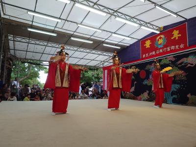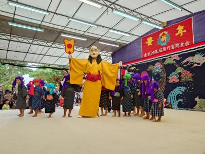 竹富公民館主催で十五夜祭が行われました。十五夜祭は男の子の祝日とされ、各支会の旗頭が参集し芸能が演じられ、地域住民総出で大綱引きを行います。各戸で赤米餅をつくりお月様に今年の豊作と健康を祈願します。