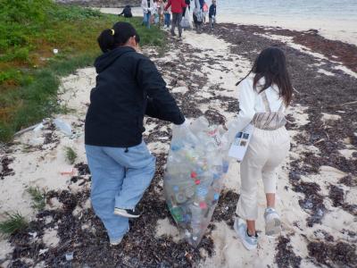 海洋教育の一環でビーチクリーンに取り組んでいます。今回は、港の隣のアイホーシ浜の清掃を行いました。