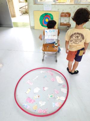 小学1・2年生が竹富保育所の年長さんを招いて「おもちゃランド」を行いました。アイディアをこらして作ったゲームで保育所生を楽しませてくれました。終了後は、先生方や他学年と交流し、楽しい時間を過ごしました。