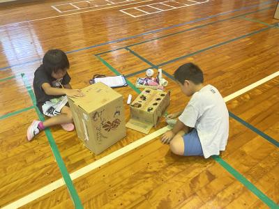 小学生はこの日に向けて、保育所生と一緒に遊ぶためのおもちゃをつくってきました。
