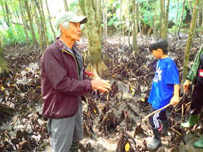 令和8年3月16日(月)豊かで多様性に富んだ郷土での体験学習を通して,豊かな心を育てるというねらいのもと、ふるさと自然体験学習を実施しました。講師に池田米蔵さんを招聘し、網取集落、崎山集落へ赴き、集落の歴史や西表島の豊かな自然について講話いただきました。