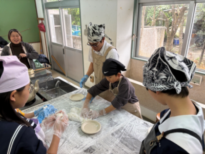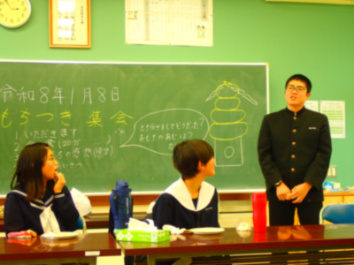 令和8年1月8日(木)新年を迎えるにあたり幸福・円満・無病息災を願いつつ、もちつき大会を実施しました。児童生徒職員が協力してお餅をつき、美味しく食べることができました。