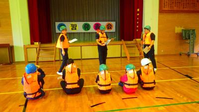 児童生徒は「おかしもち」を実践し、安全に素早く非難することができました。