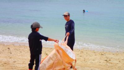 令和7年11月6日(木) 海洋教育の授業の中で、児童生徒職員が海浜清掃を実施しました。