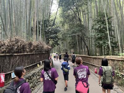 2日目は、京都観光です。「渡月橋」「竹林の小径」「金閣寺」「北野天満宮」「清水寺」の見学、そして清水寺周辺を生徒3名で自由散策しました。