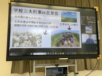 本校生徒は、今年度行った古見岳登山での学びと個人の探究とを関連づけた学びを通してプレゼンを作成しました。「西表島ならではの仕事(ツアーガイド、パイナップル農家等)」「地域行事」「猪・せまるはこがめ・アカショウビン」「危険生物」「マングローブ・さがり花・ニッパヤシ」「イシクラゲ」「パイン」「さとうきび」等について探究したものを発表しました。