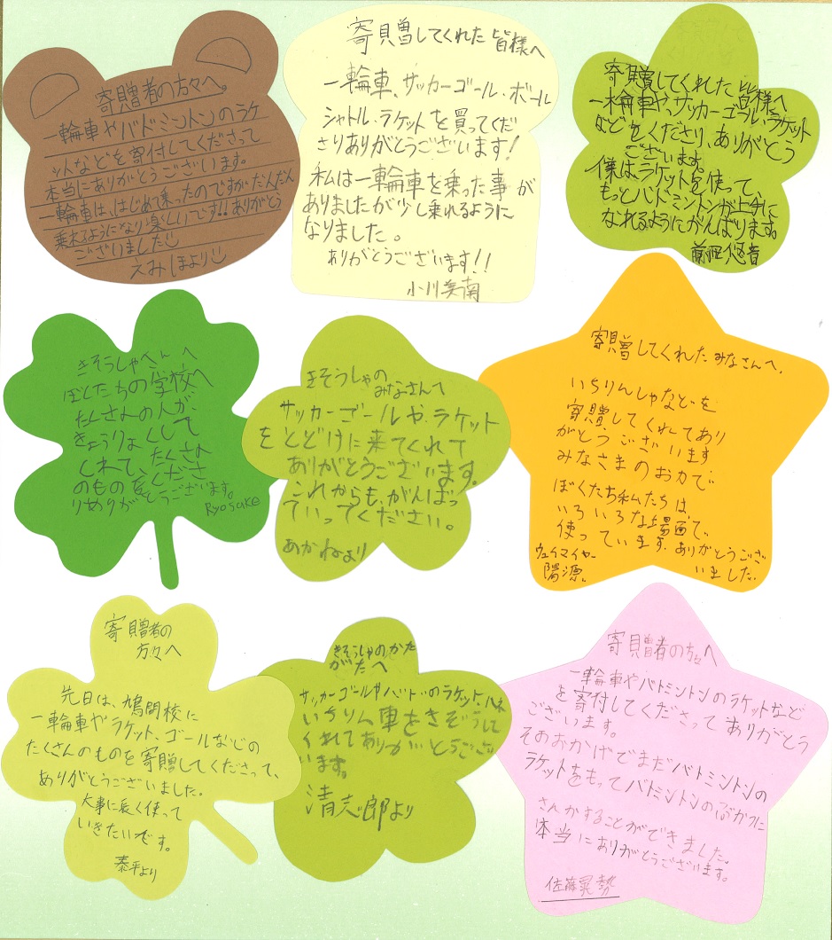 子どもたちからのお礼のメッセージです。
