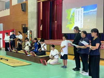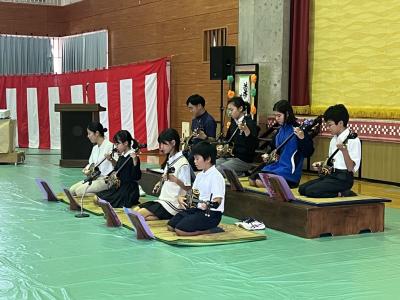 幕開けの「鳩間節」はクラブ活動の時間に勇さんにご指導していただきました。ありがとうございました。