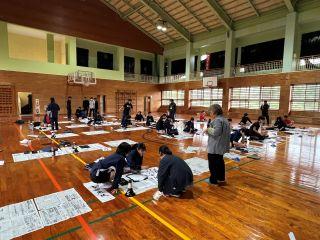 新春校内書き初め大会を開催。講師に津嘉山佳子さん