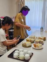 ▲自分達で作ったサンドウィッチを撮影する寮生達